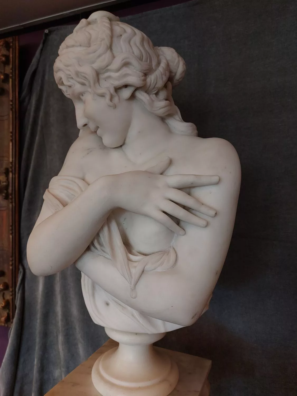Buste en marbre de Carrare LA PUDEUR d'après HOUDON