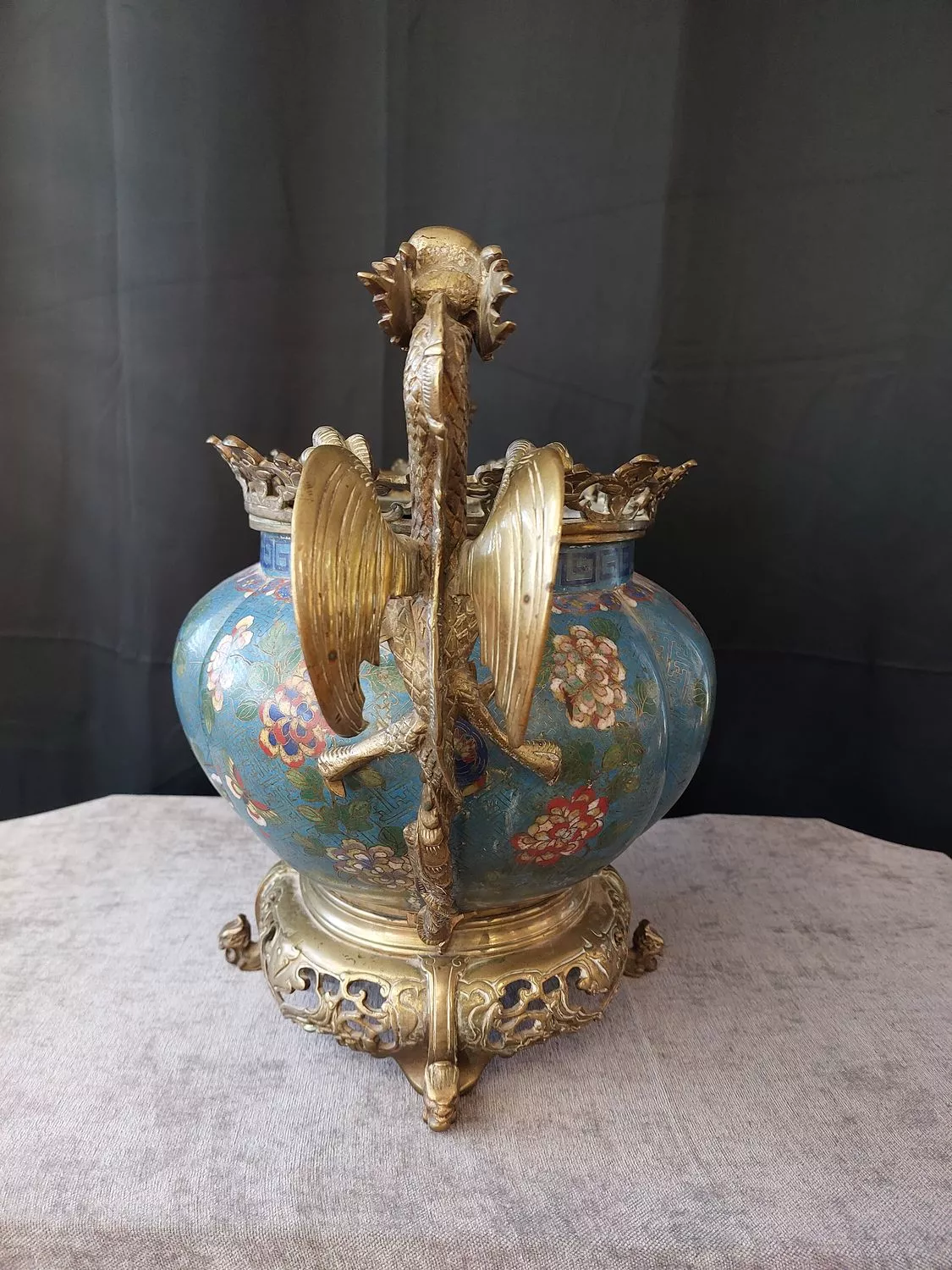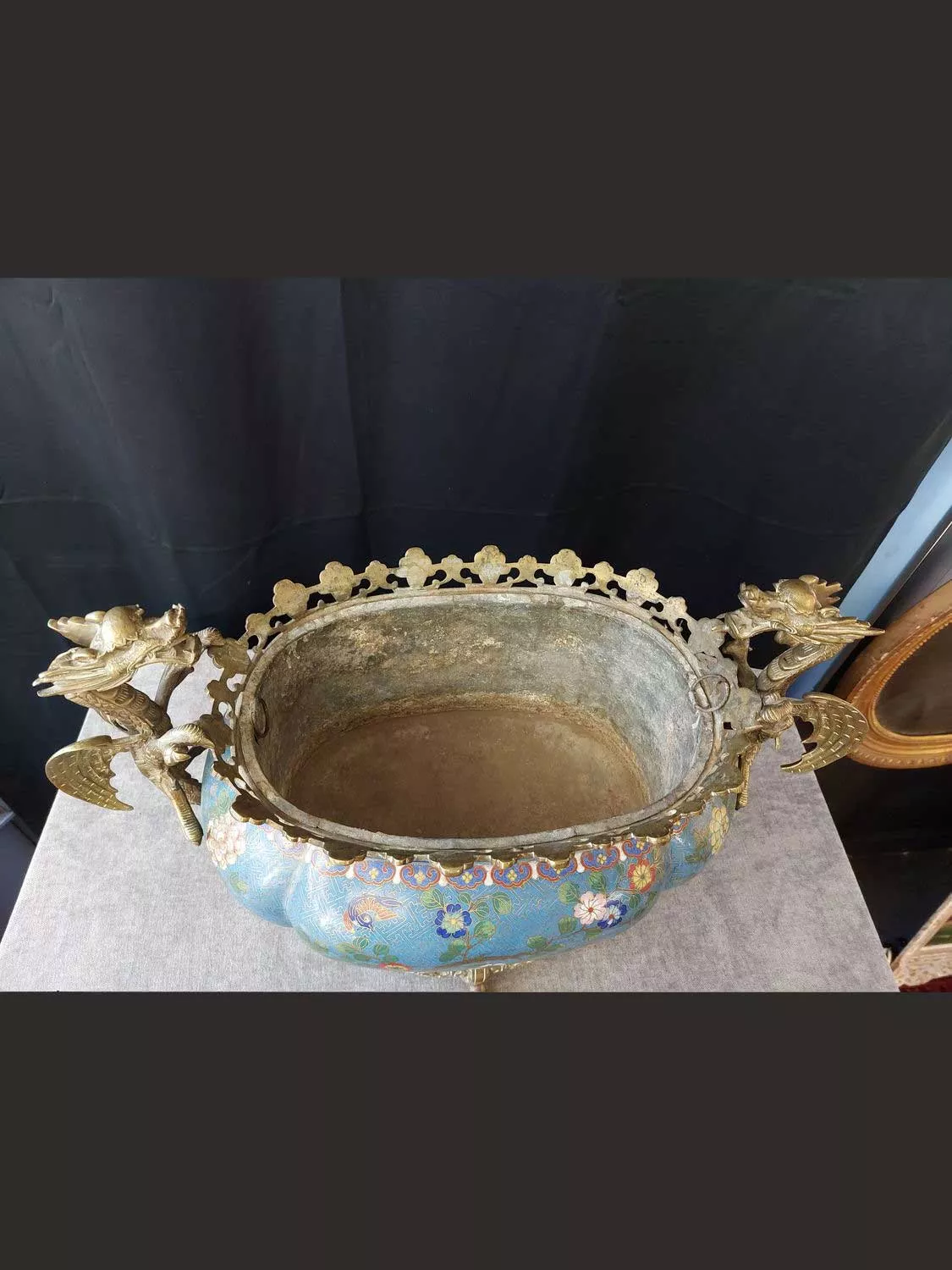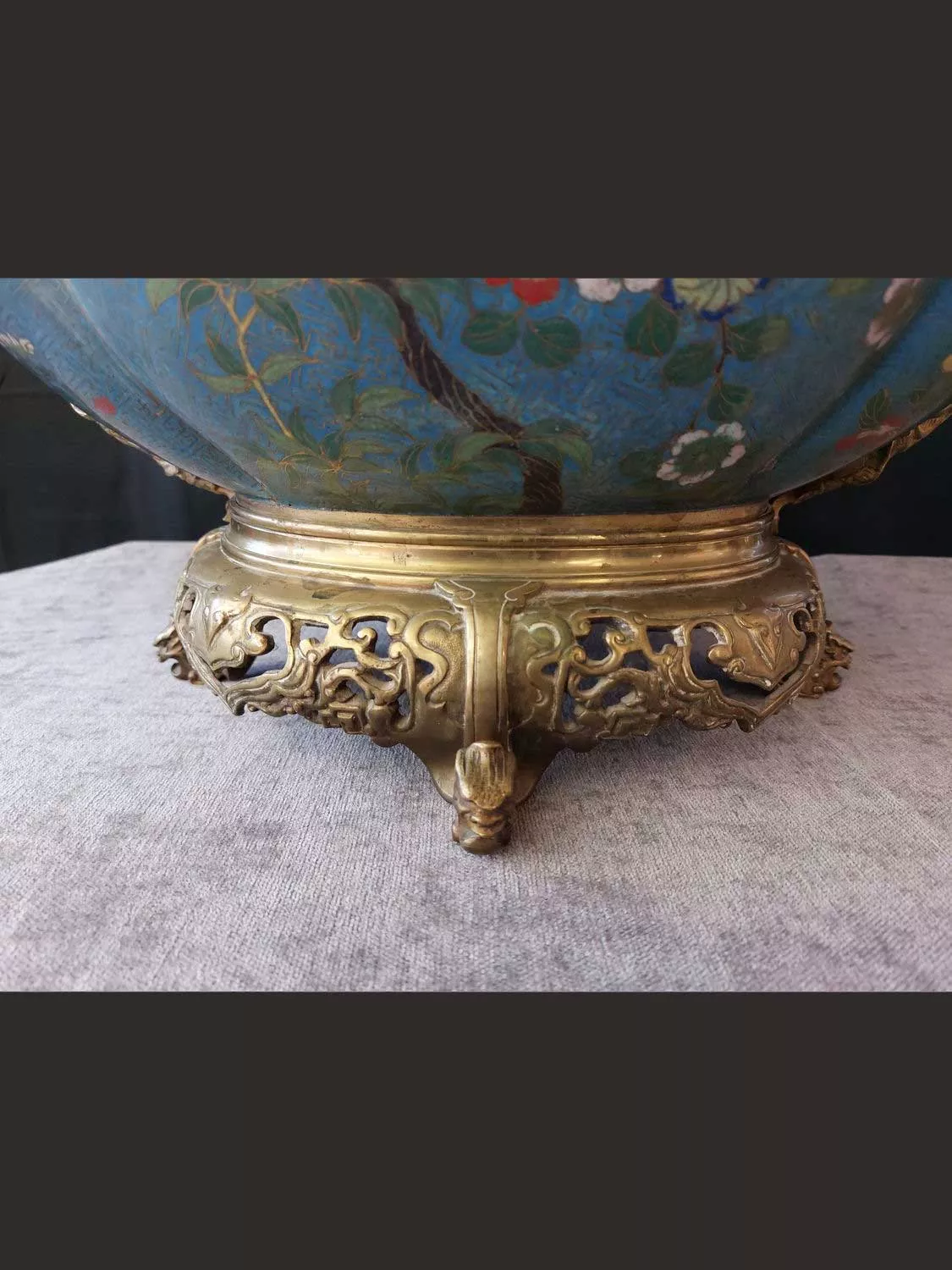 Très belle et grande jardinière en bronze et émaux cloisonnés
