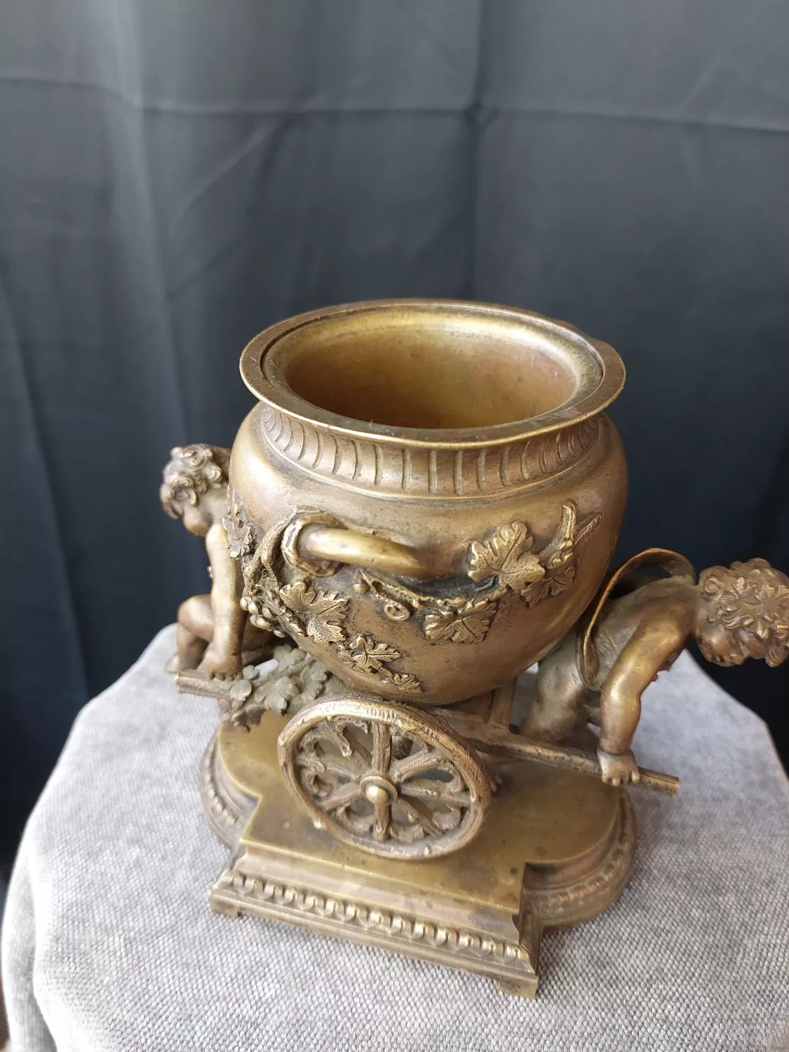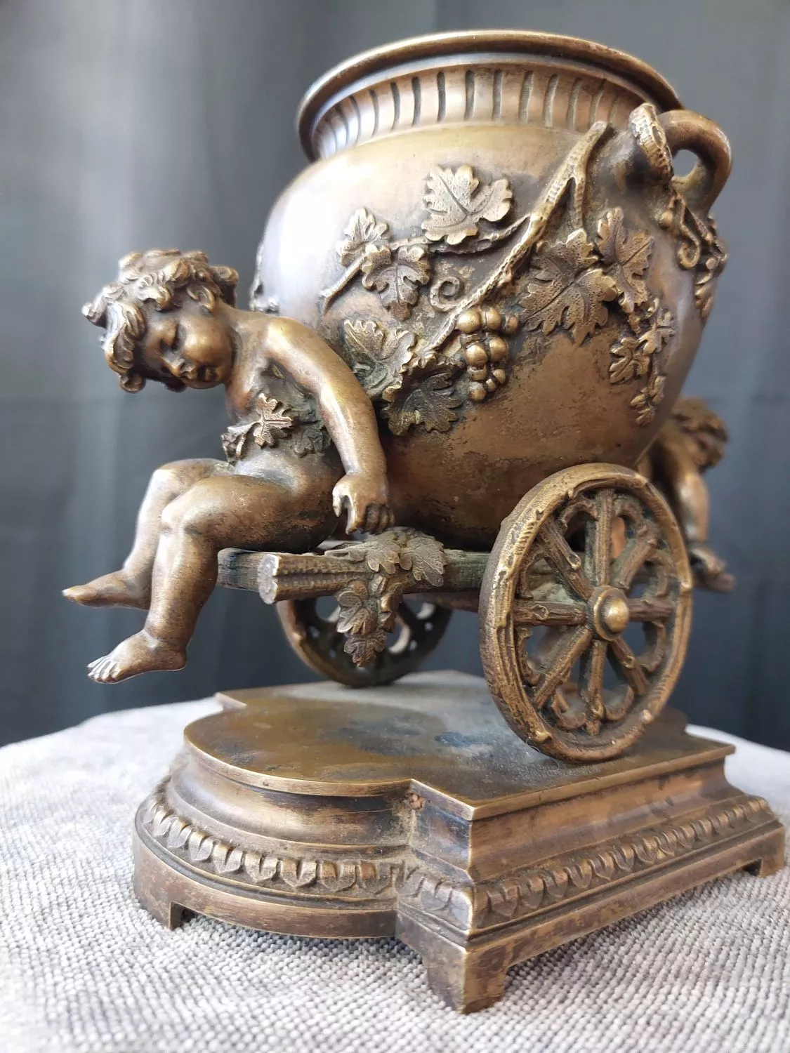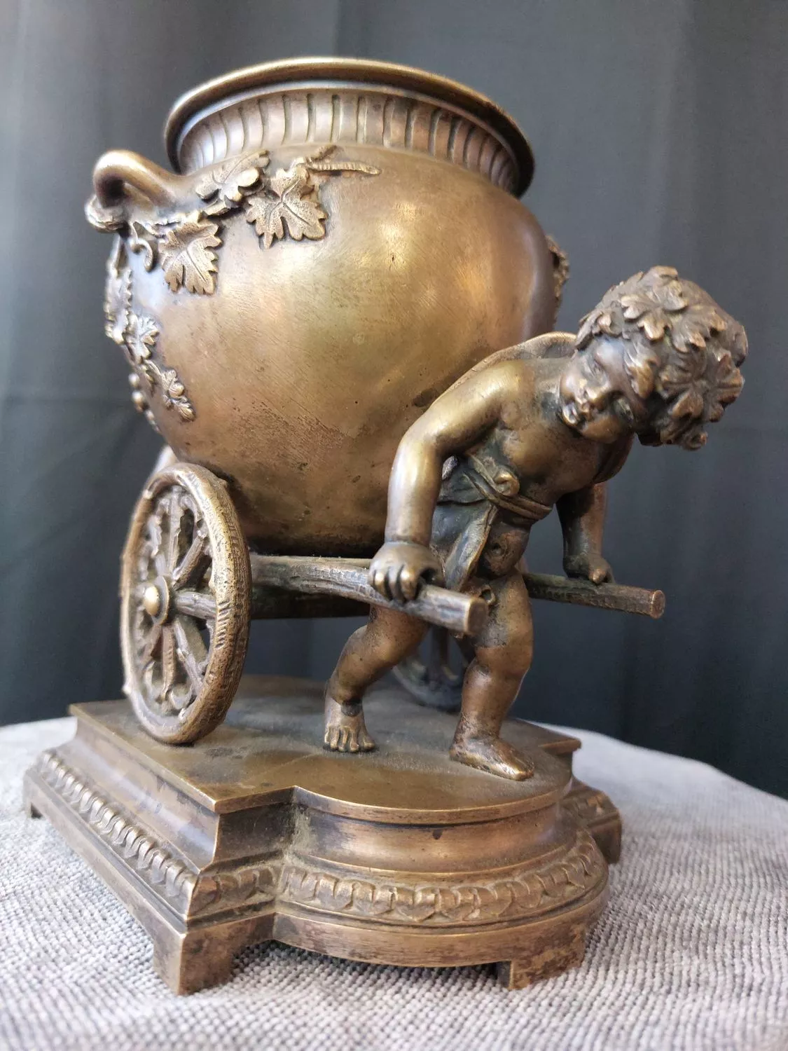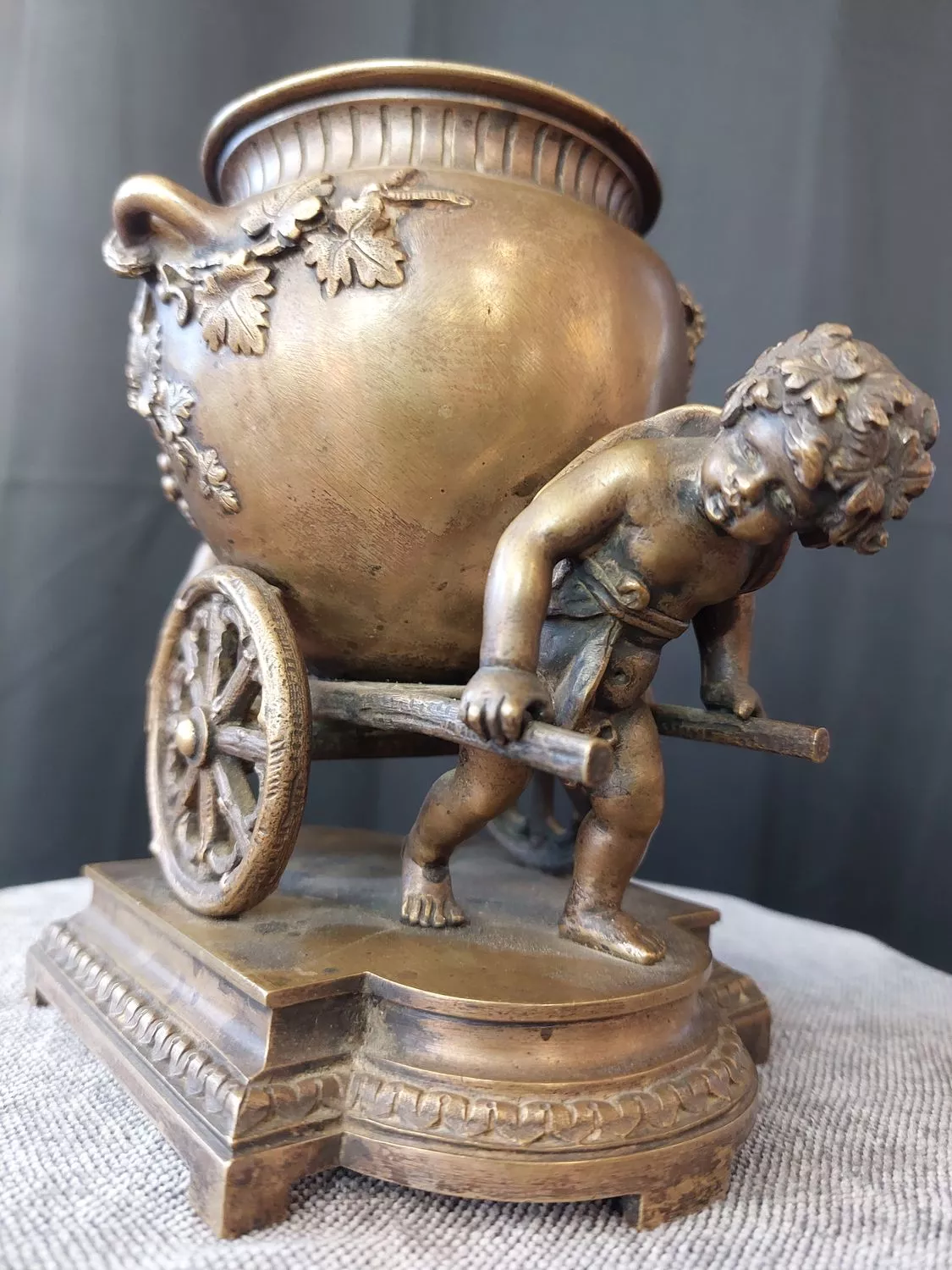 Charmant groupe en bronze doré représentant 2 putti tirant le chariot de Bacchus - Milieu du 19ème siècle