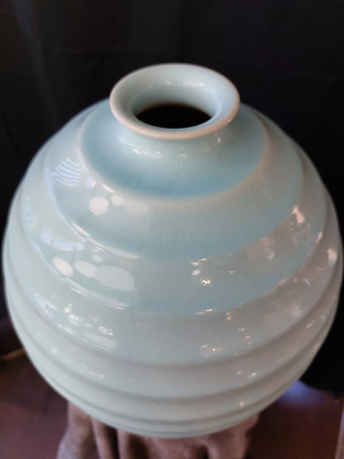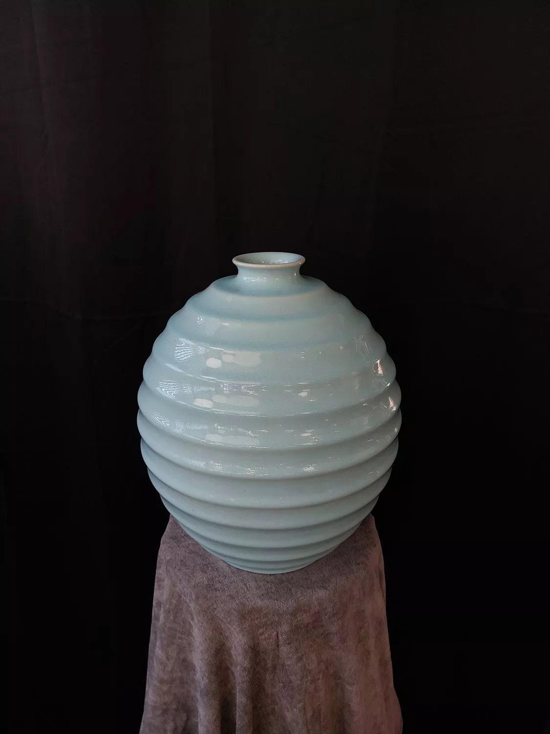 Céramique émaillée bleu turquoise pâle.